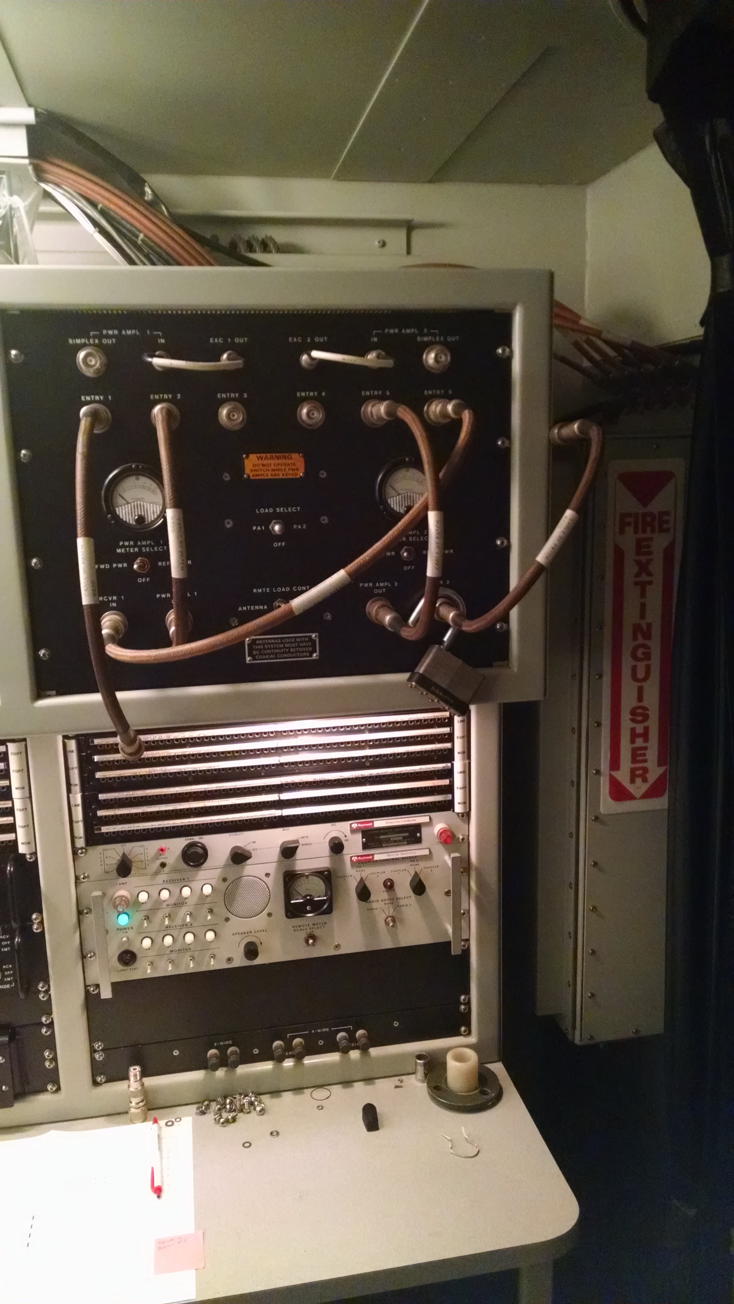 RF Patch panel has Entry 6 patched to RCV 1 IN. I have a short CB antenna attached on ENTRY 6 and I'm using it for troubleshooting the receivers in the shelter.