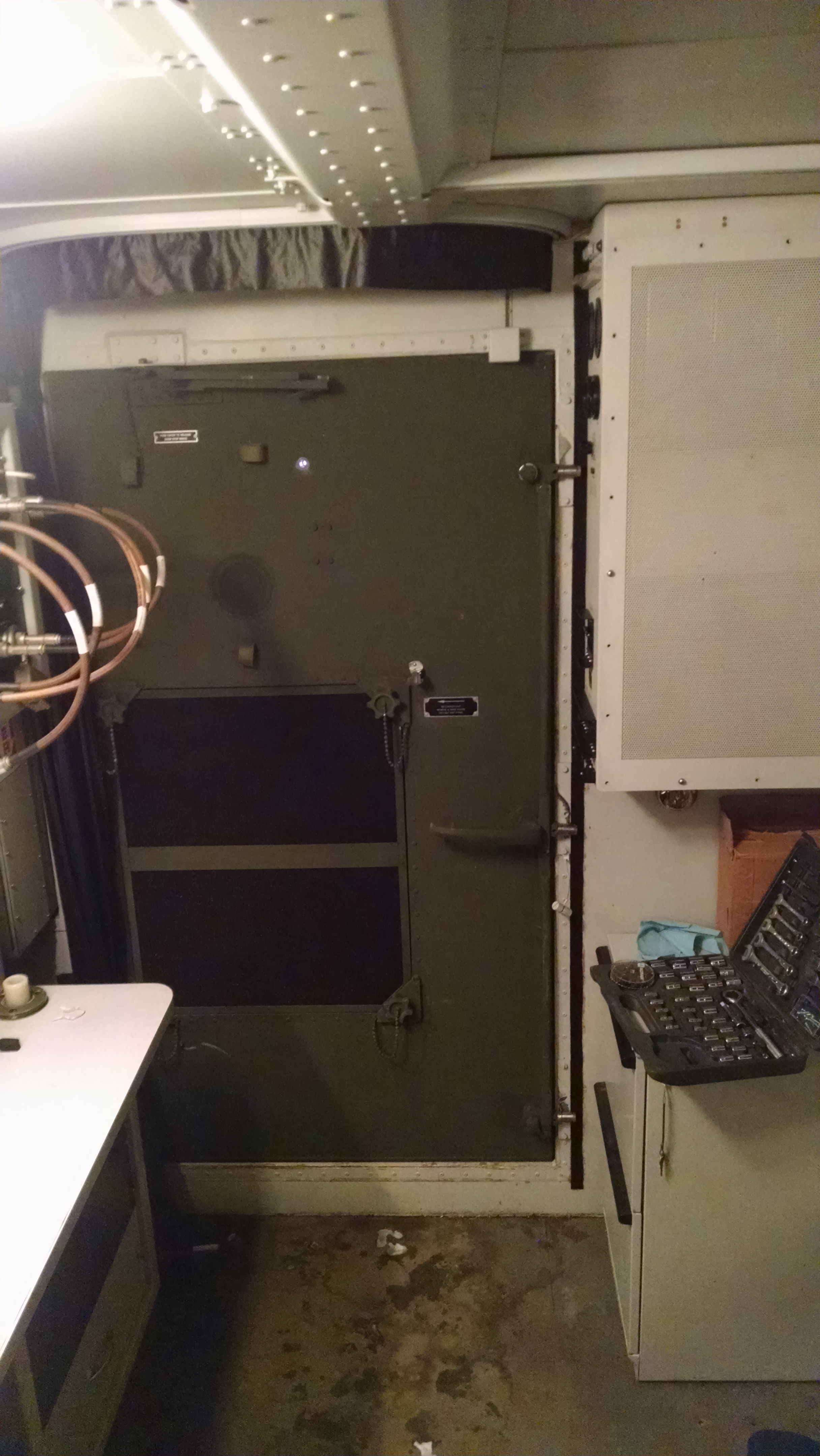 From the radio rack looking toward the door and the power entry panel to the right.
